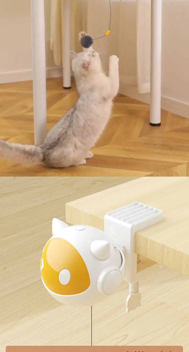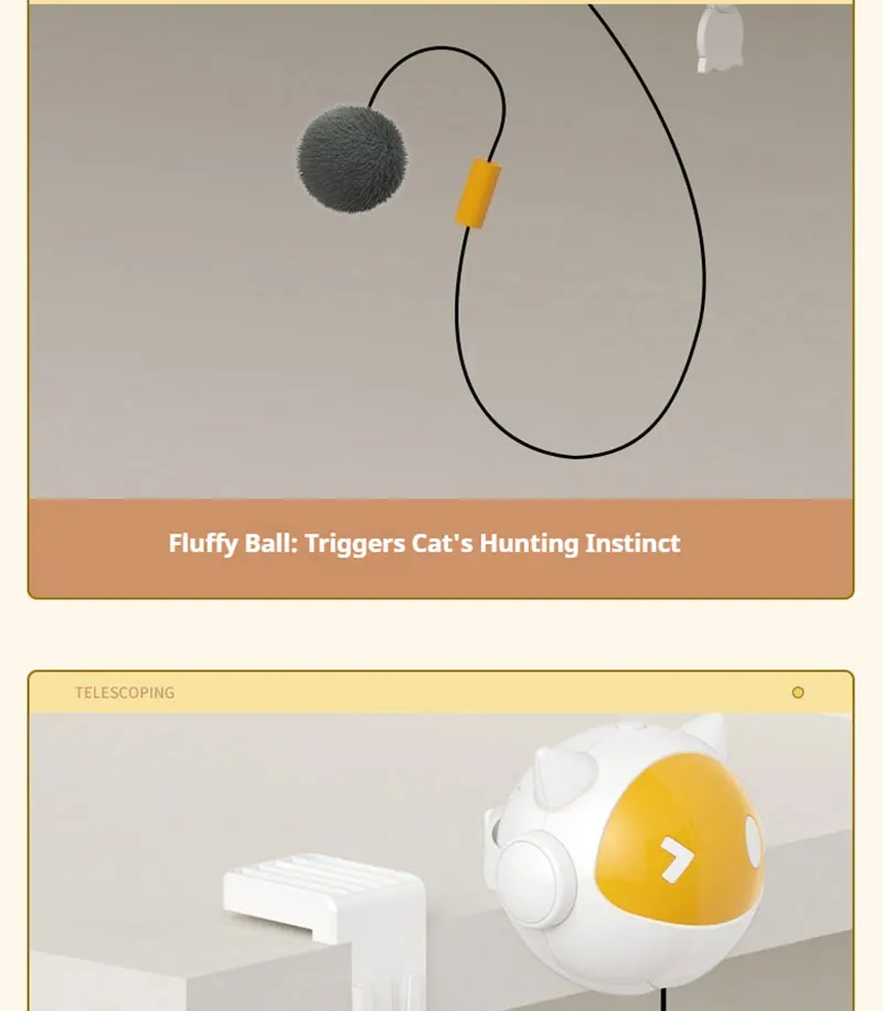 1. Self stretching and automatic lifting cat teaser ball, can be easily clipped anywhere, effortlessly relieving boredom. Playing freely, inducing hunting instincts, using fluffy fur balls to unleash the cat's nature.